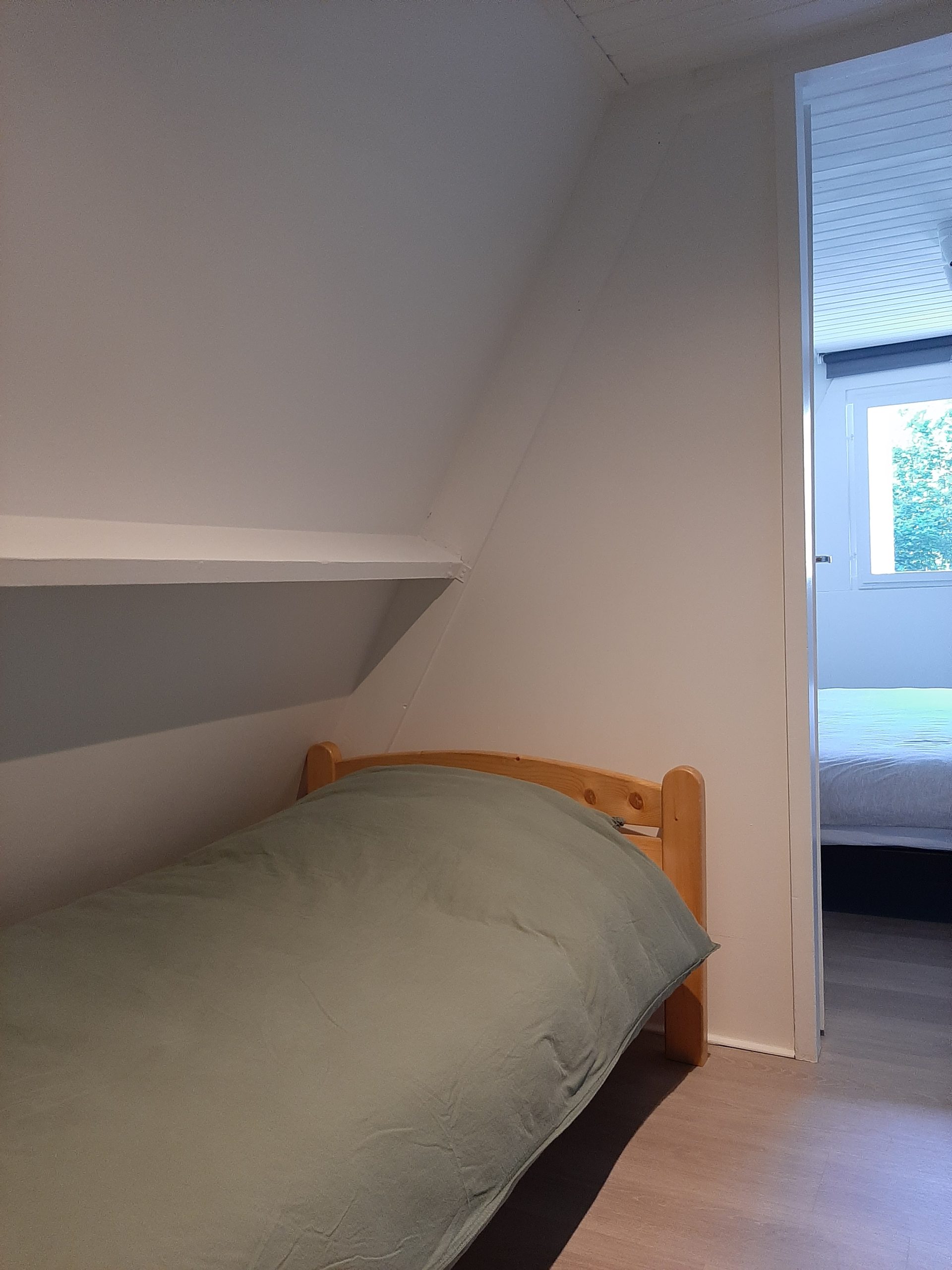 Op de eerste verdieping bevinden zich 2 aparte slaapkamers (een dubbel bed, 2 enkele bedden) en een extra bed op de overloop. Een extra babybed kan bijgeplaatst worden.